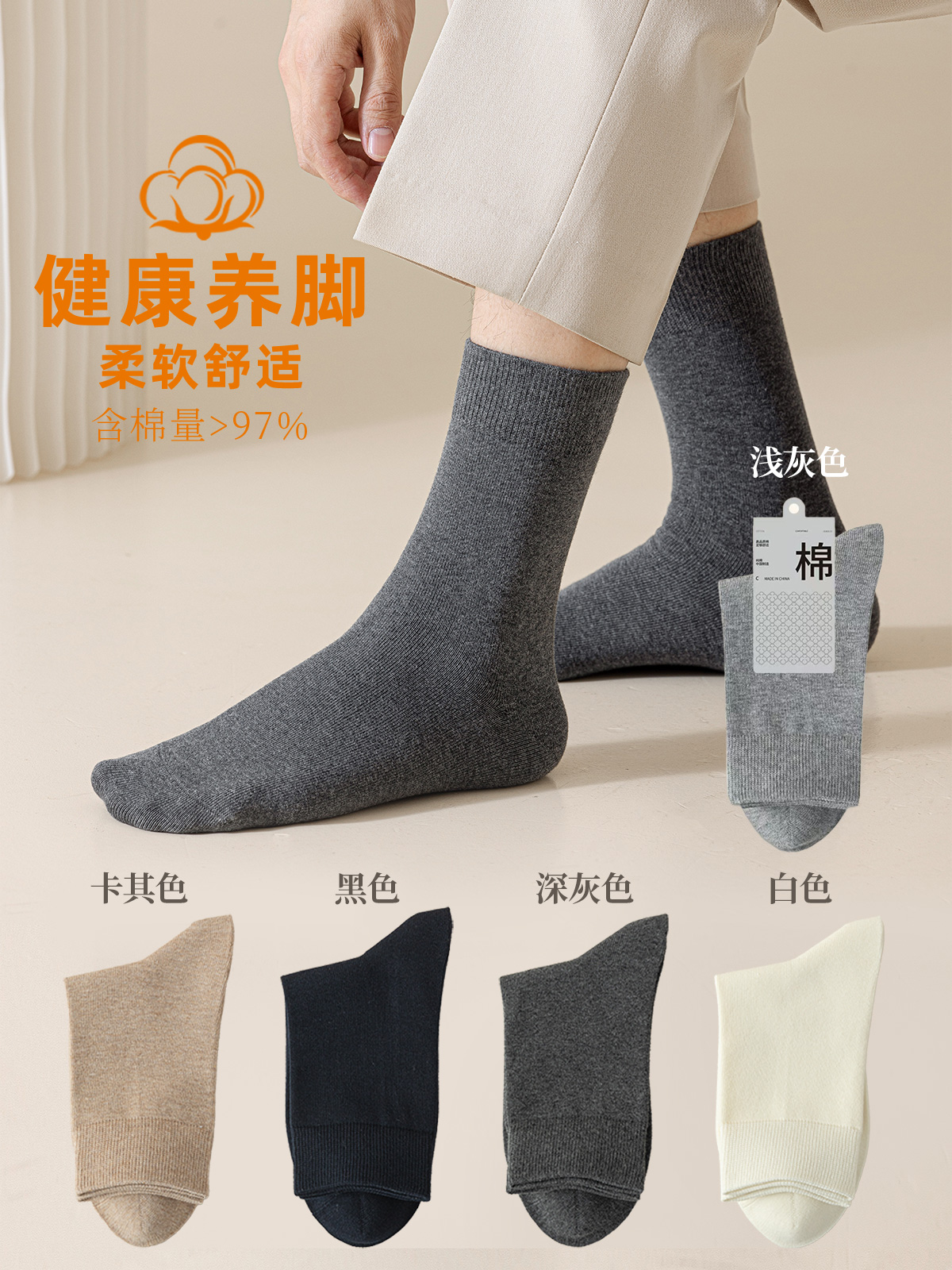 【205新款秋冬】男士中筒纯棉袜(2双链接)-拍1就是2双同色 拍3就是6双,享受满减优惠