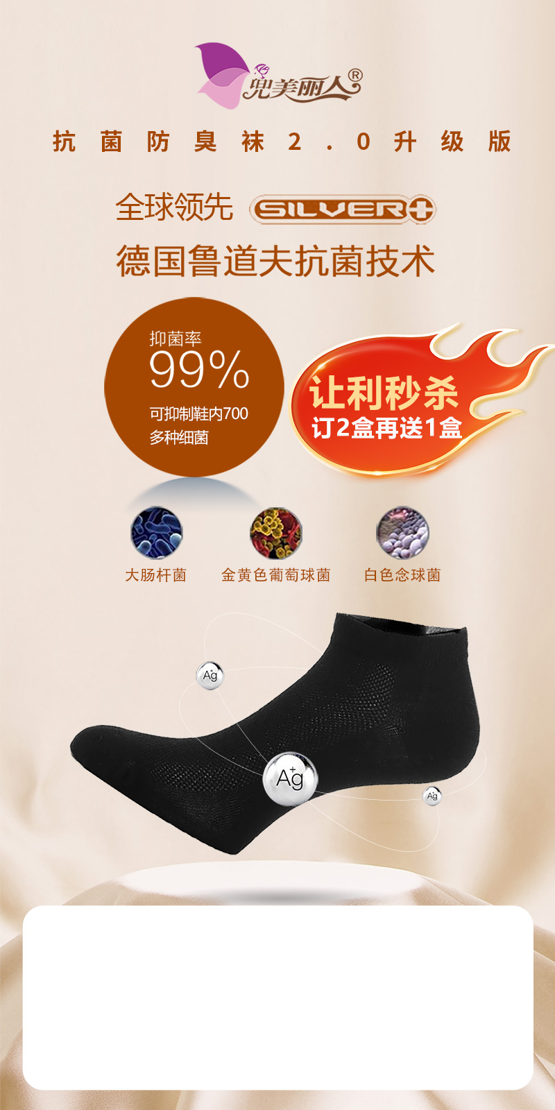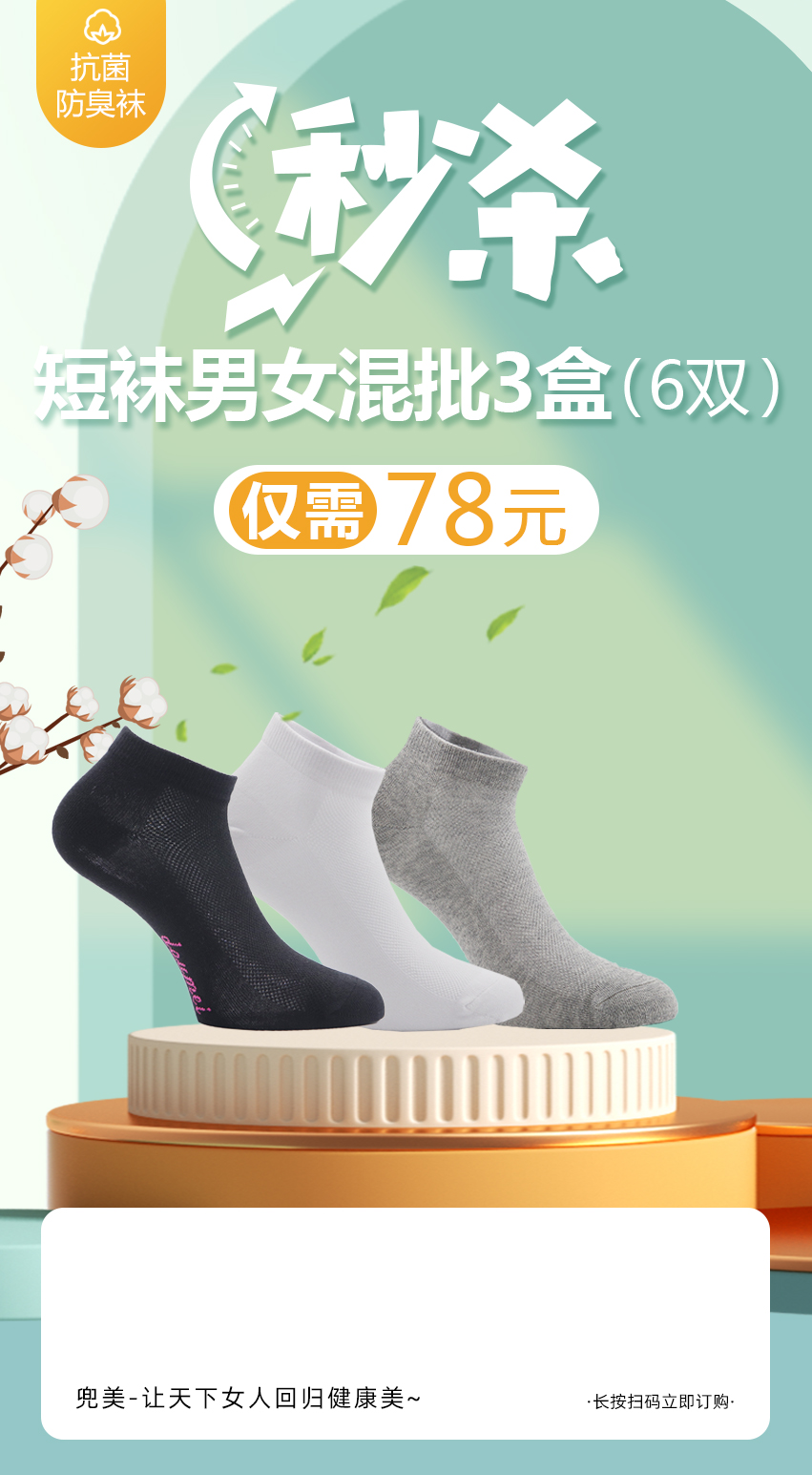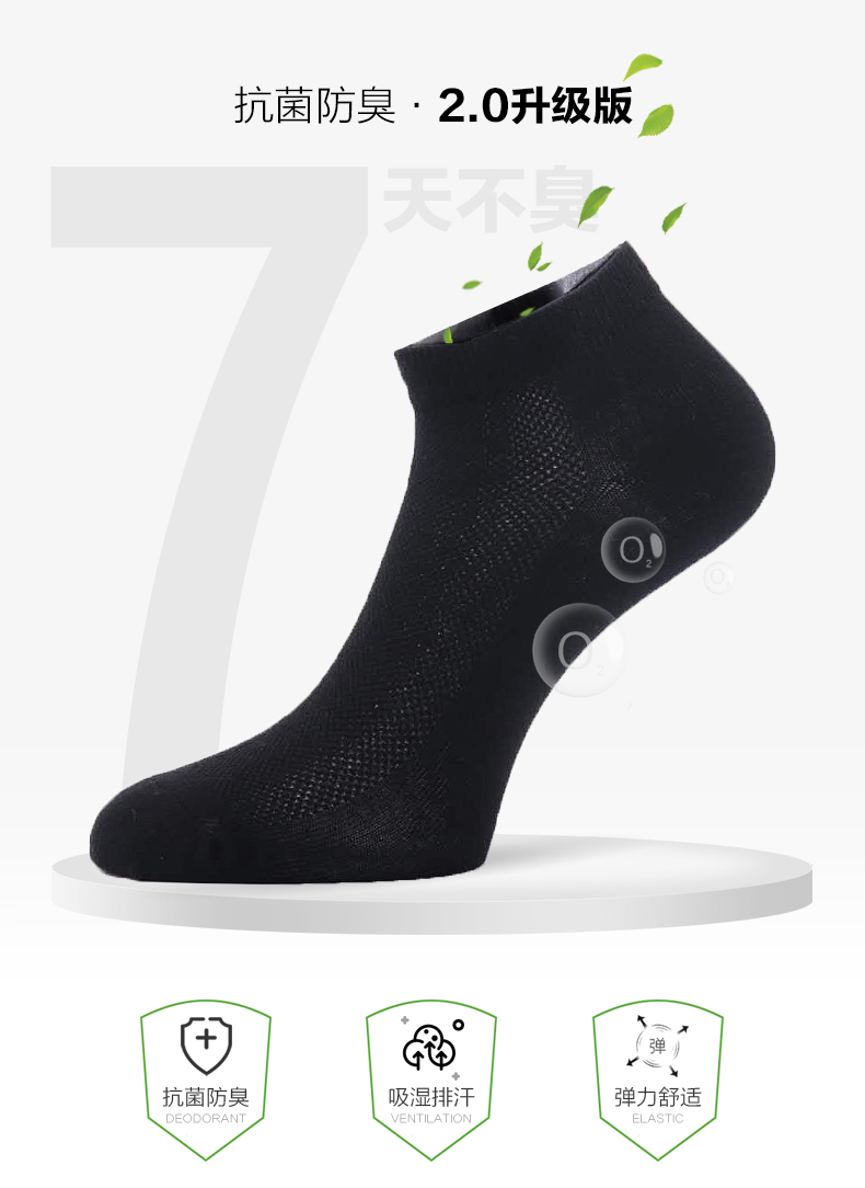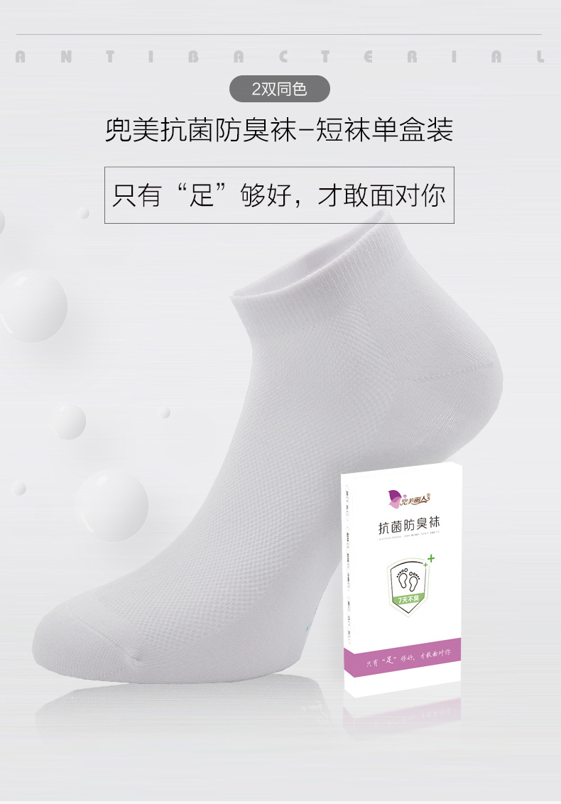【订2盒送1盒】抗菌防臭袜短袜单盒装2双同色