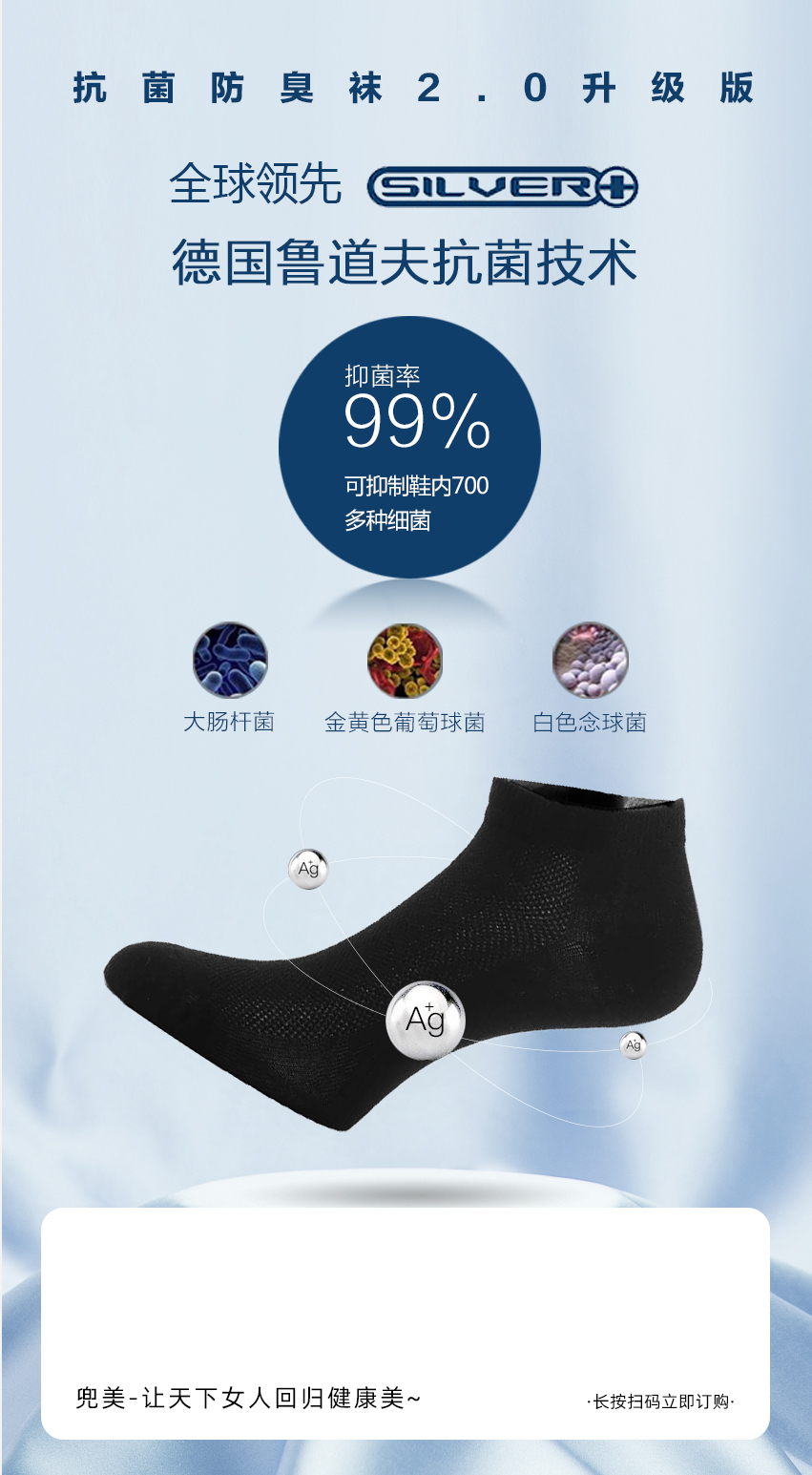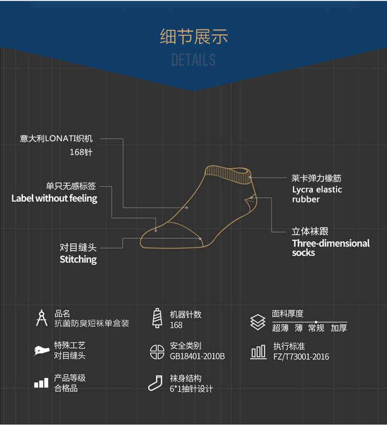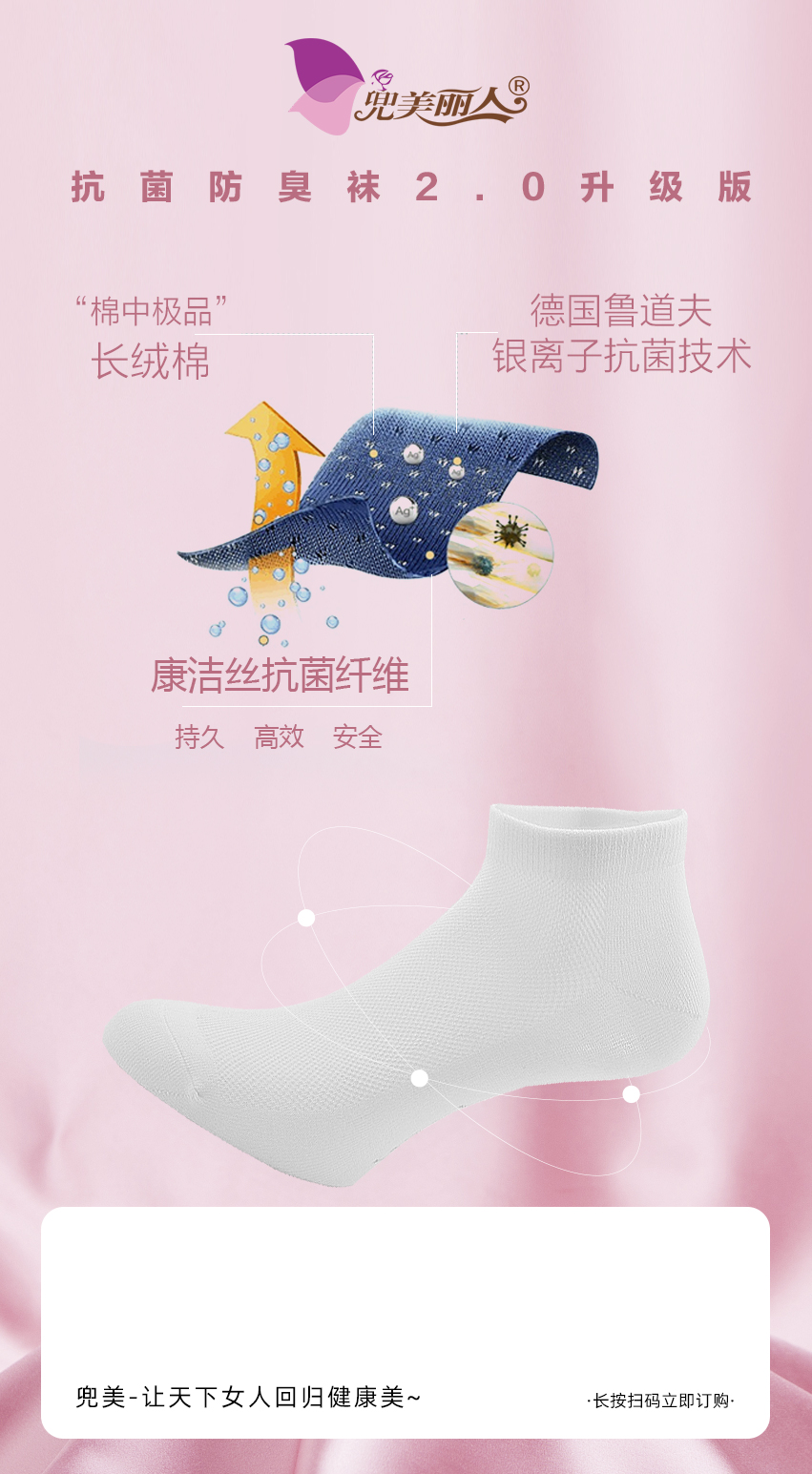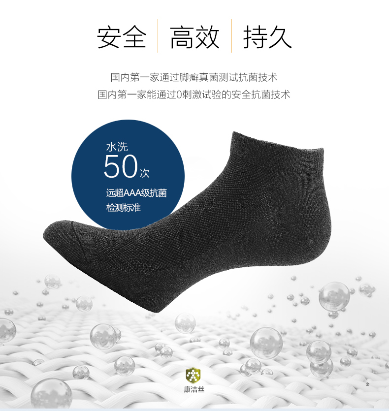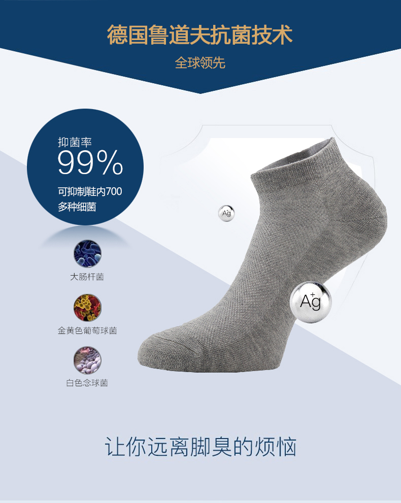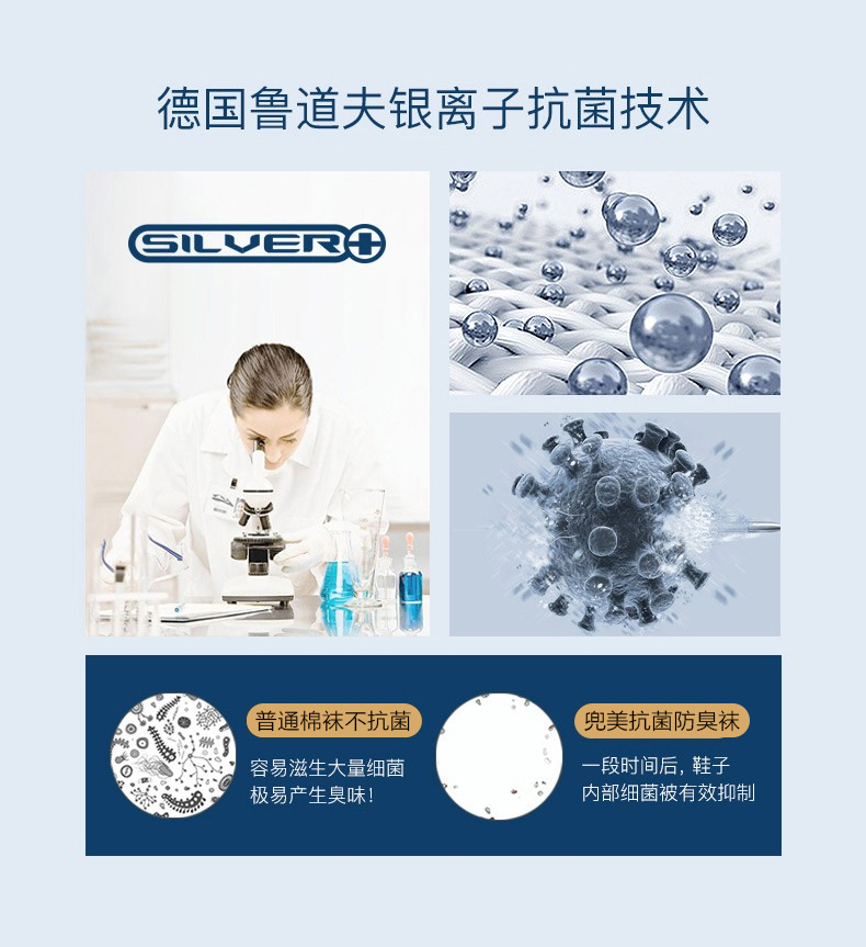 优质长绒棉,配合鲁道夫+康洁丝双重抗菌防臭技术,呵护足部健康,远离臭味烦恼。