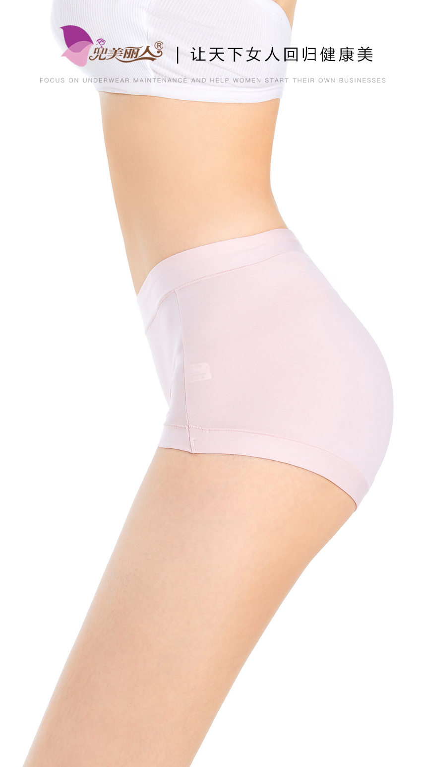 长绒棉中高腰蚕丝内裤粉色