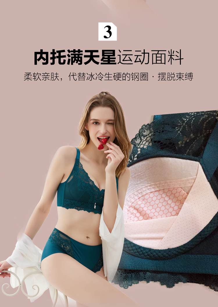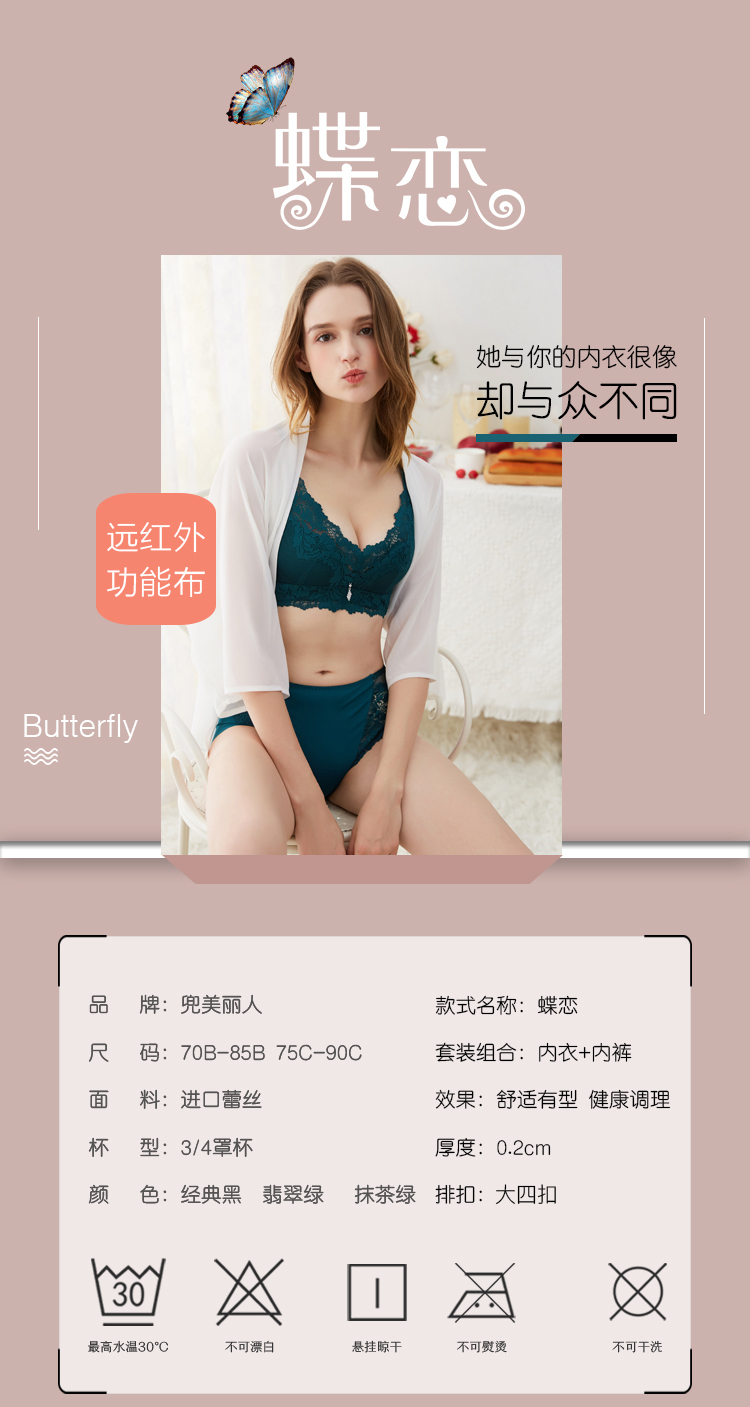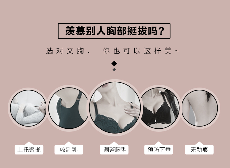 远红外温变,调理女性乳腺健康;杯面深V设计,胸部性感绽放;U型无痕美背,更轻松完美