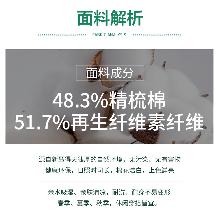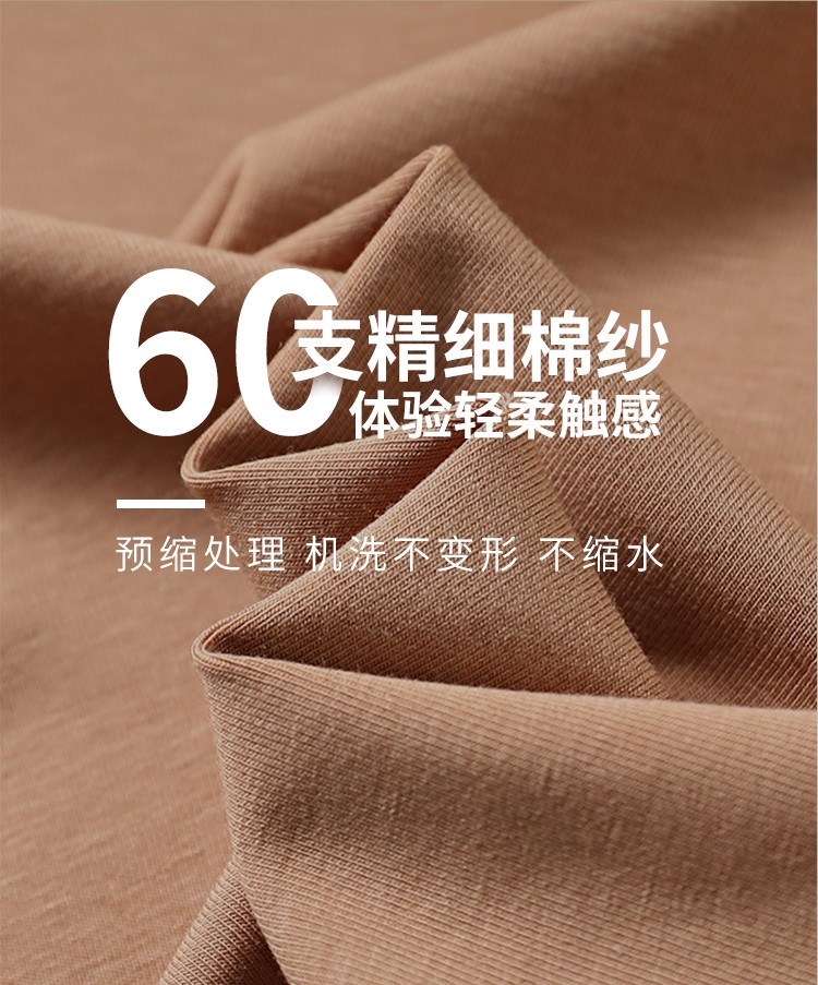 高密精梳棉,丝滑触感,亲肤舒适,吸湿透气。