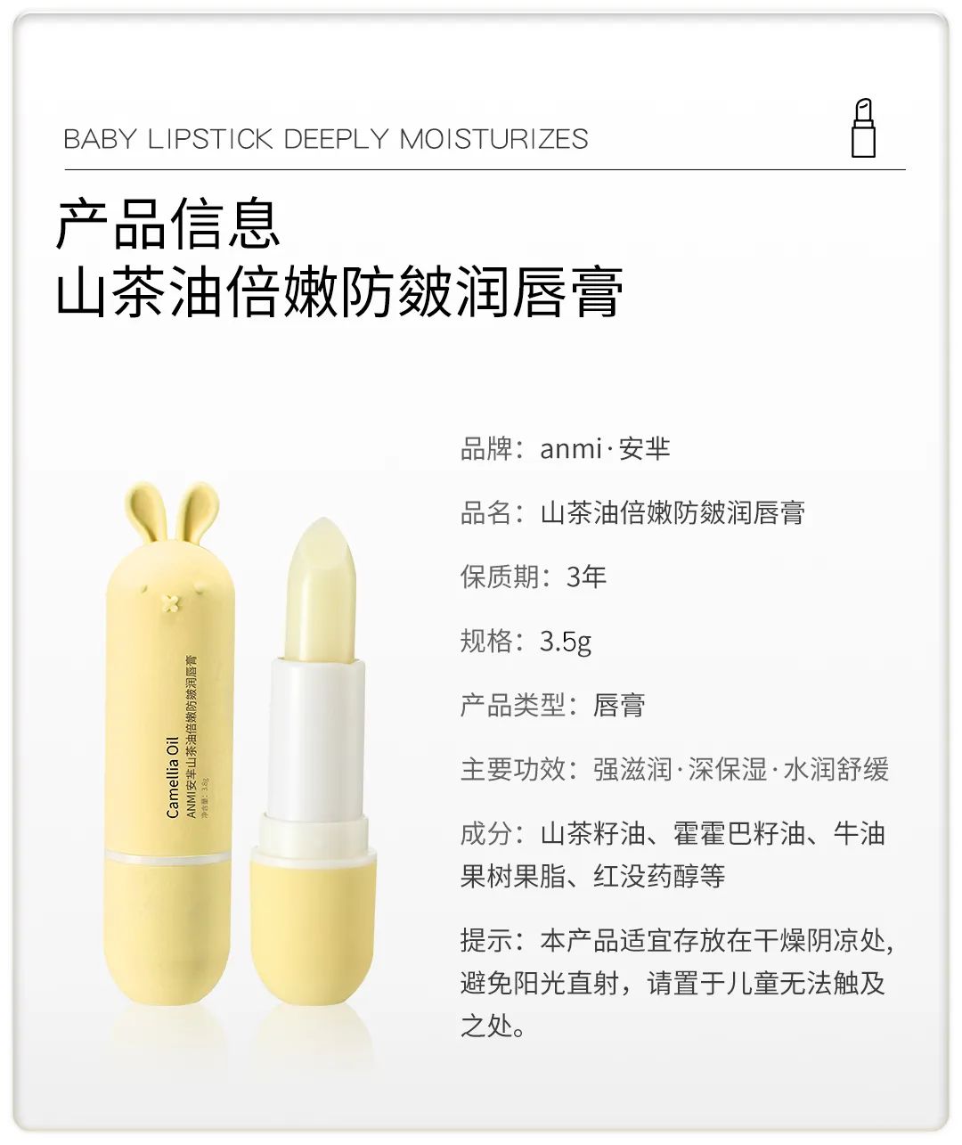 ANMI安芈山茶油倍嫩防皴润唇膏