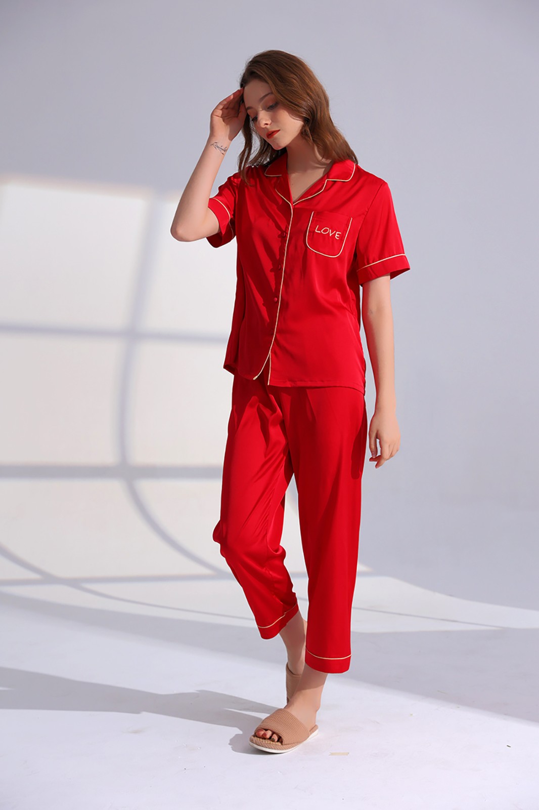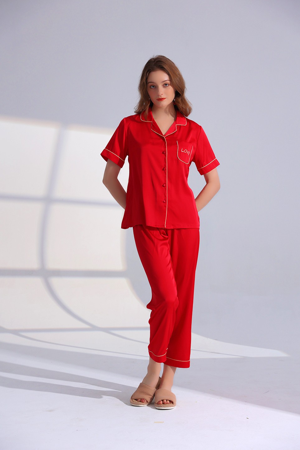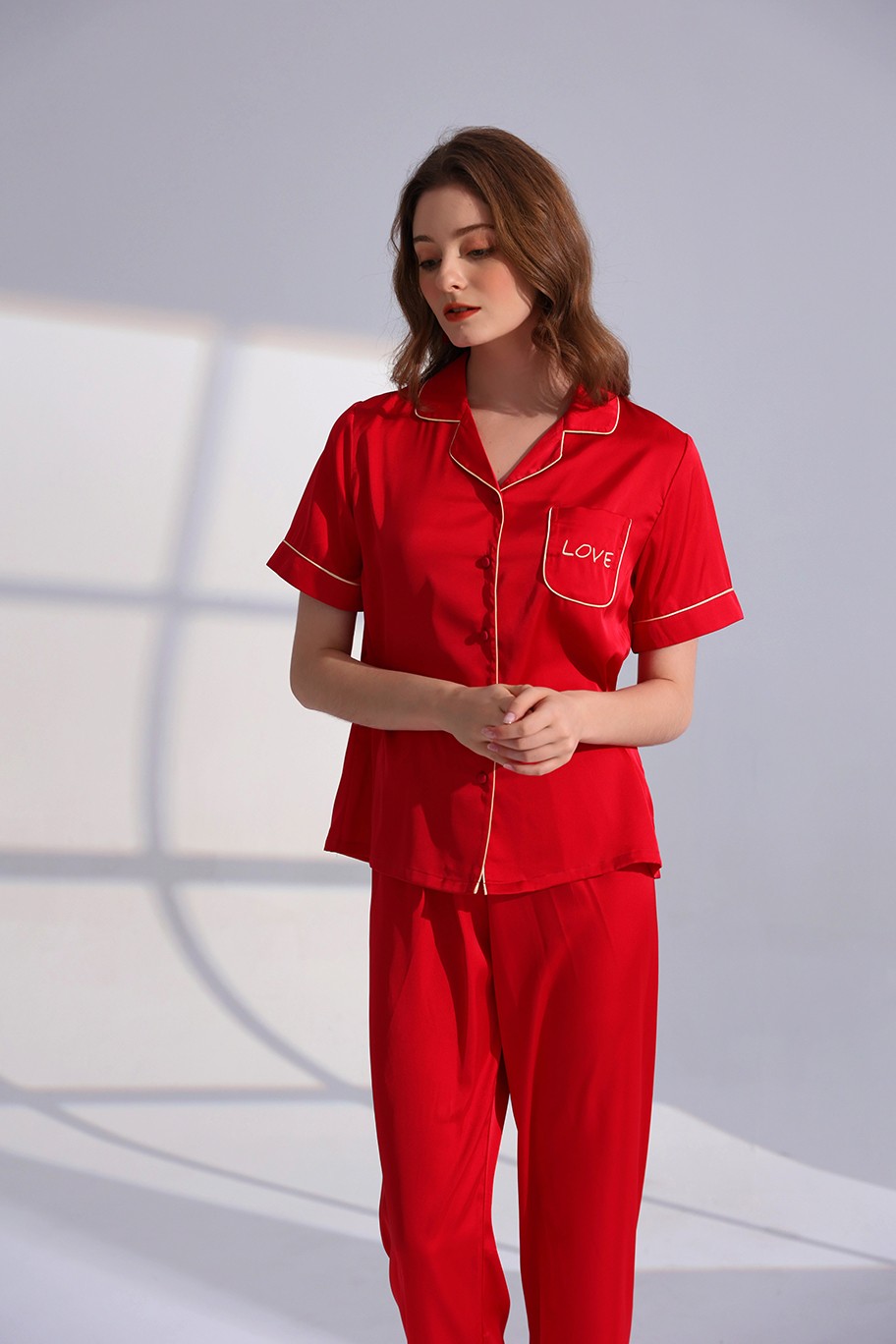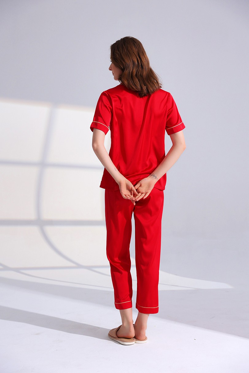 W11166-金玉良缘缎面绸套装【女士酒红-劲爆秒杀】