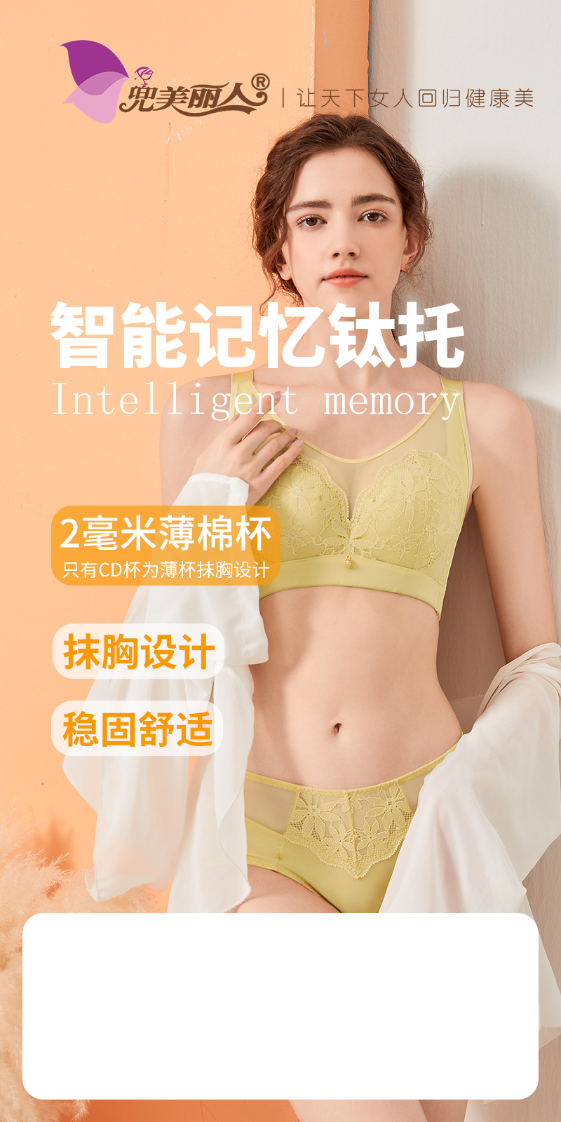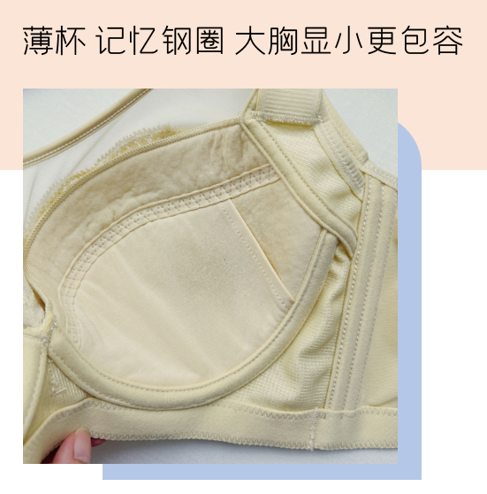 钢圈可以随意变形折弯,只要穿上身用身体的温度就能让钢圈记住您的胸型,更好更快的贴合胸底曲线。