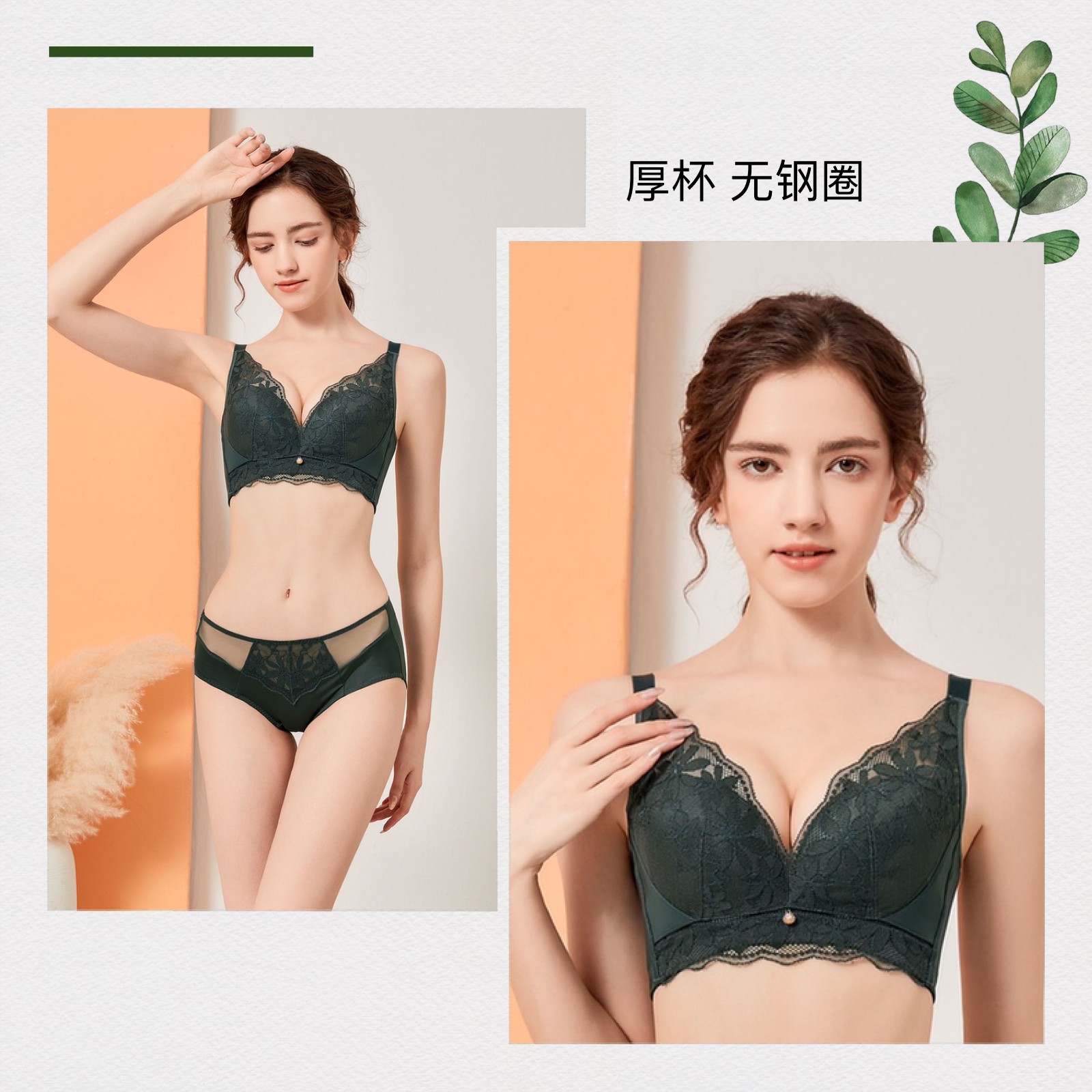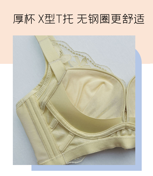 AB杯为舒适无钢圈设计,有良好承托功能同时,完美贴合胸型解放双峰压力,不压迫乳腺,保持顺畅乳房的血液循环。