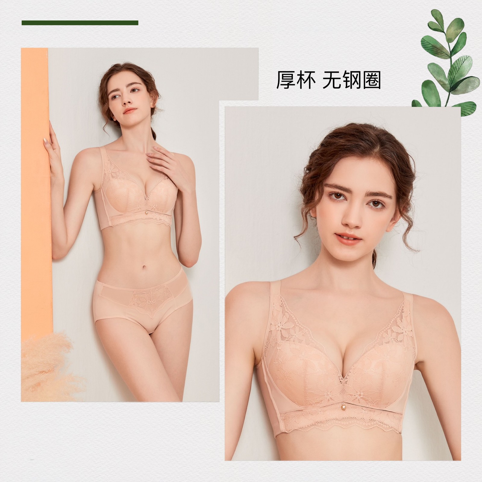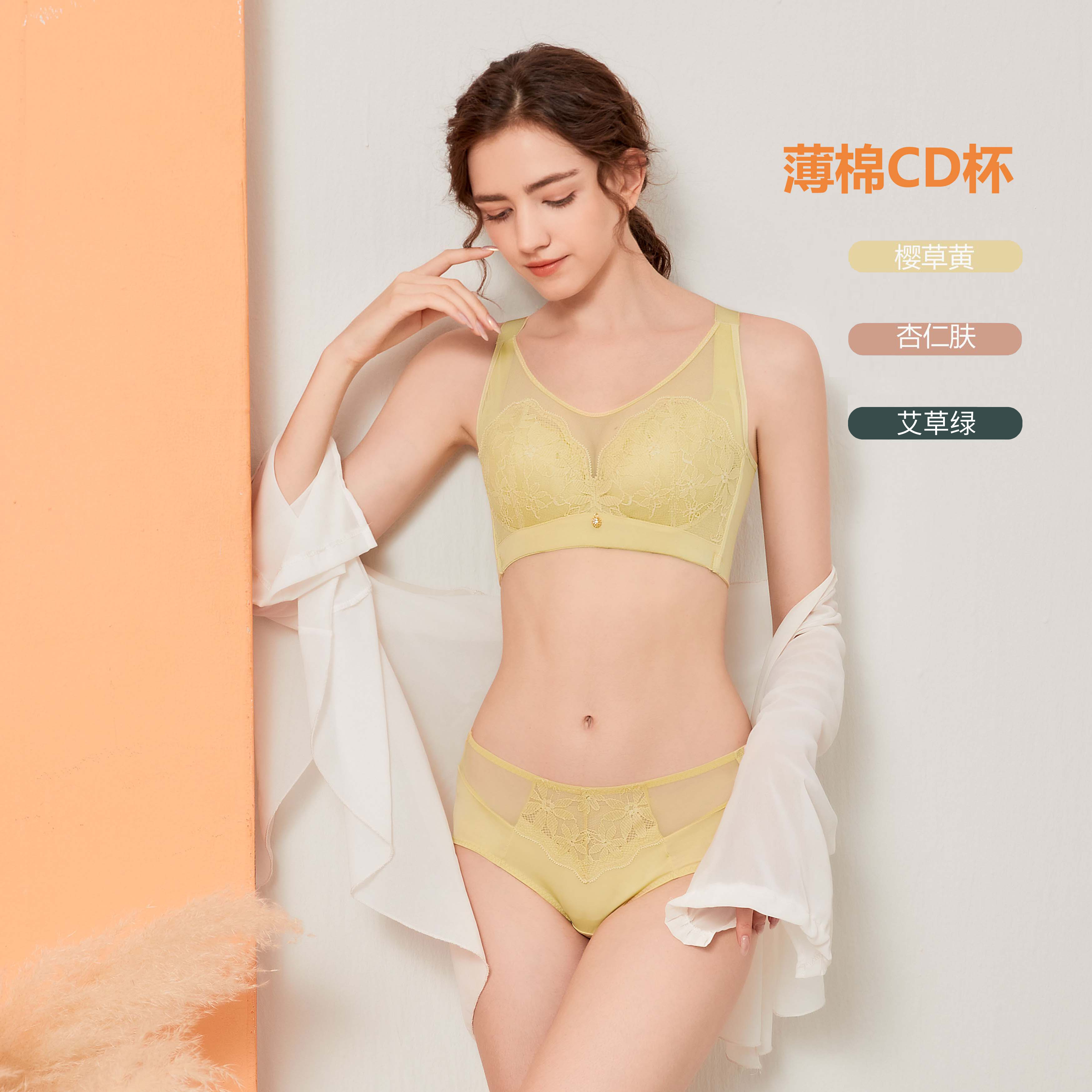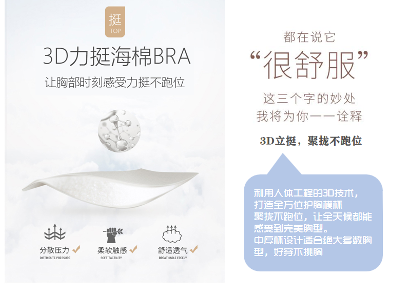 薄杯丝绵手感松软、透气,不发黄,600号丝棉比普通海杯增加三倍的力挺,2倍的舒适,松软透气亲肤且富有弹性,打造无穿感且力挺的胸型。