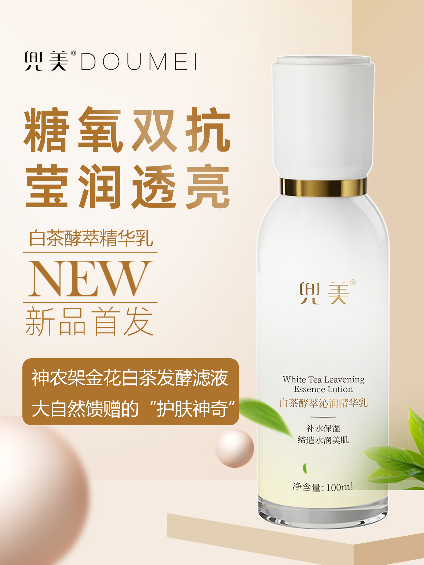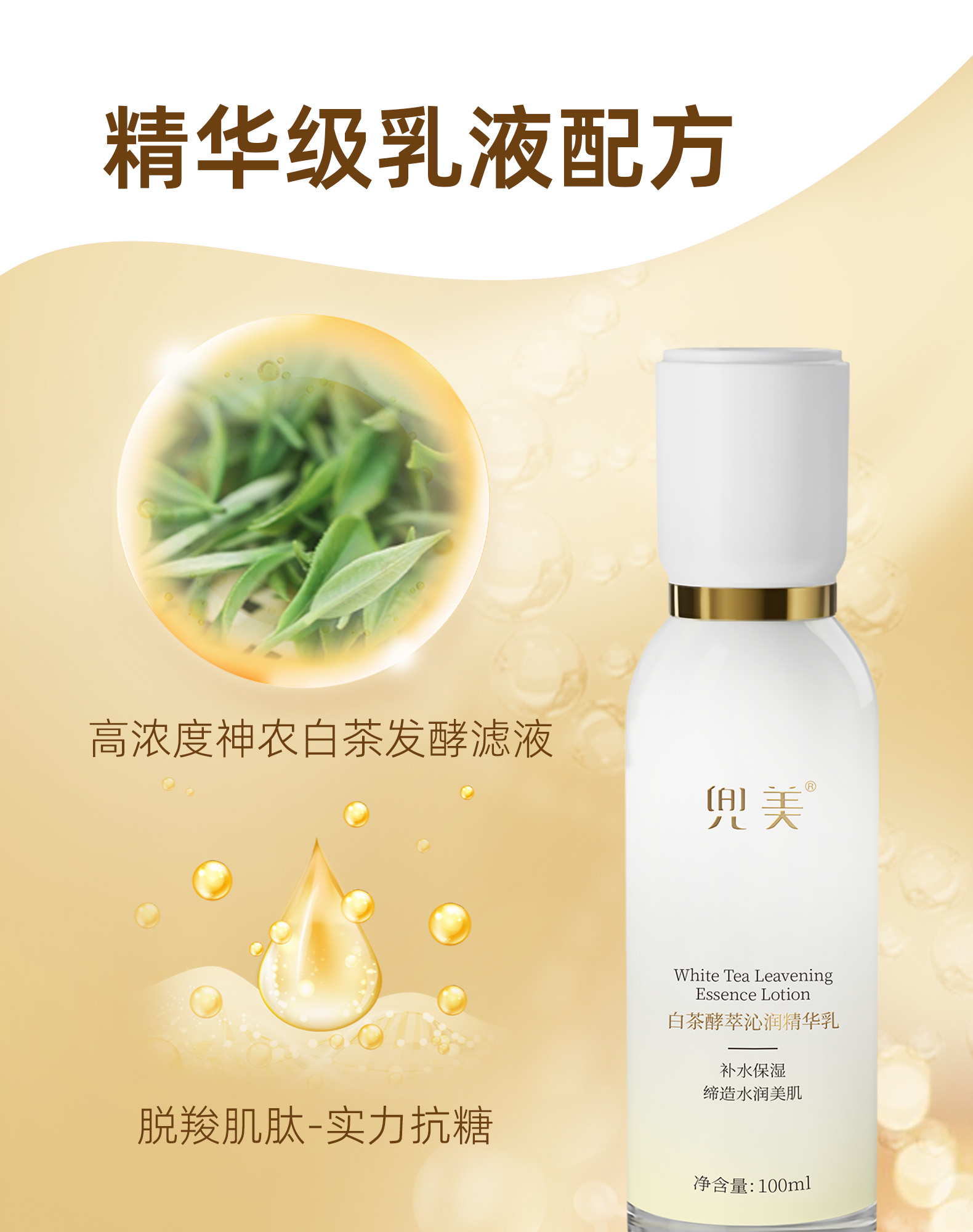 白茶酵萃双抗精华乳 补水保湿御氧抗糖-保质期到2026年7月底