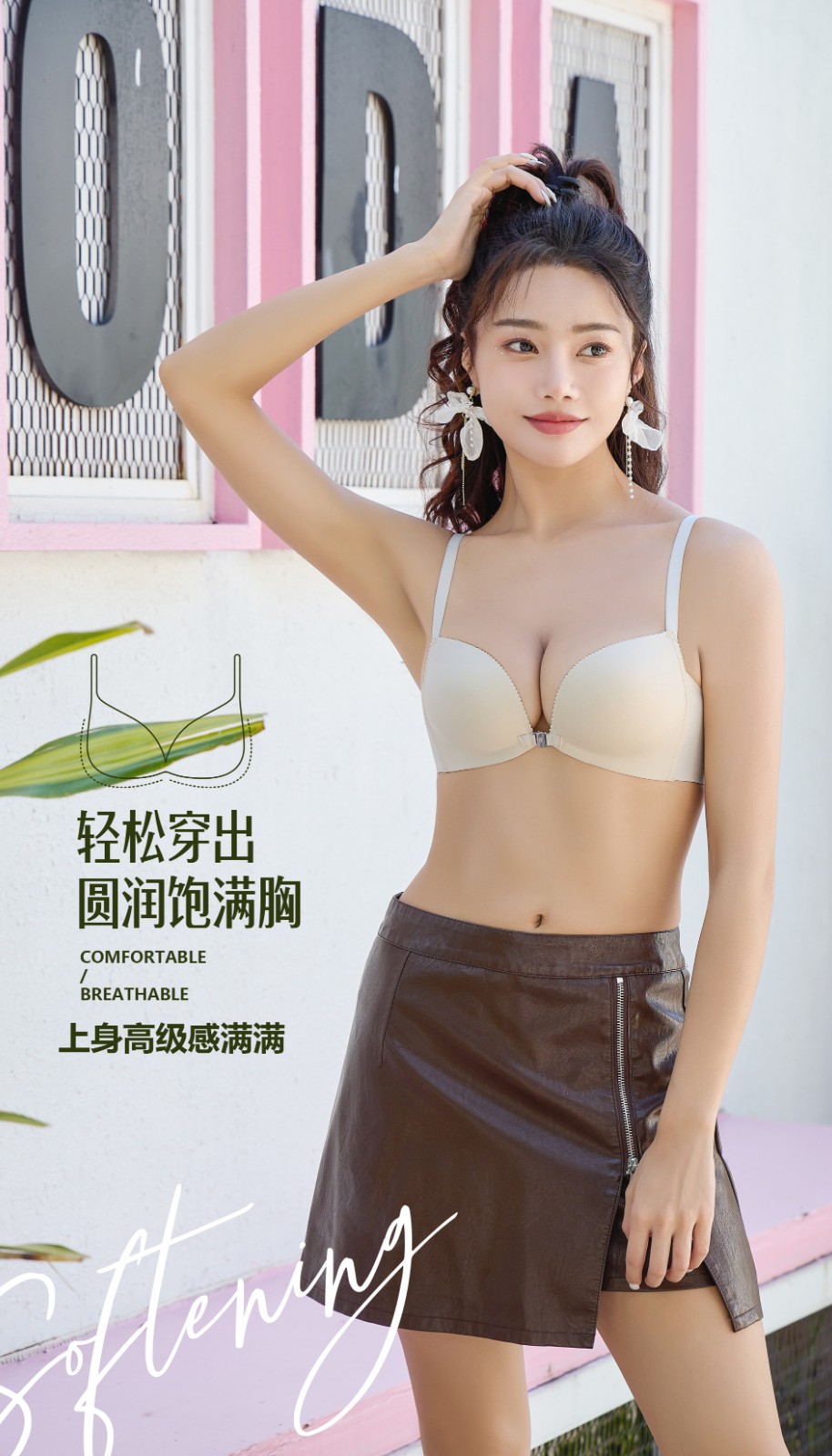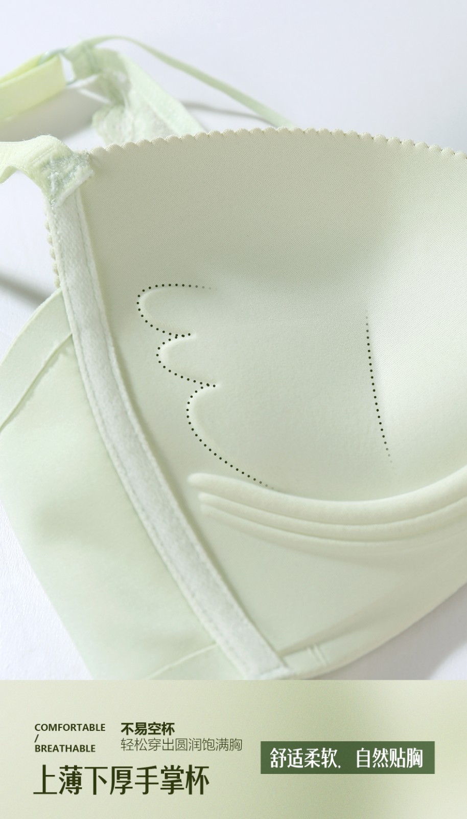 4.上薄下厚手掌杯,舒适柔软,自然贴胸,不易空杯,轻松穿出圆润饱满胸;