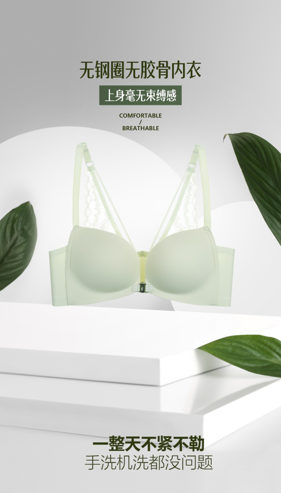 6.无钢圈无胶骨内衣,上身毫无束缚感,一整天不紧不勒,手洗机洗都没问题;