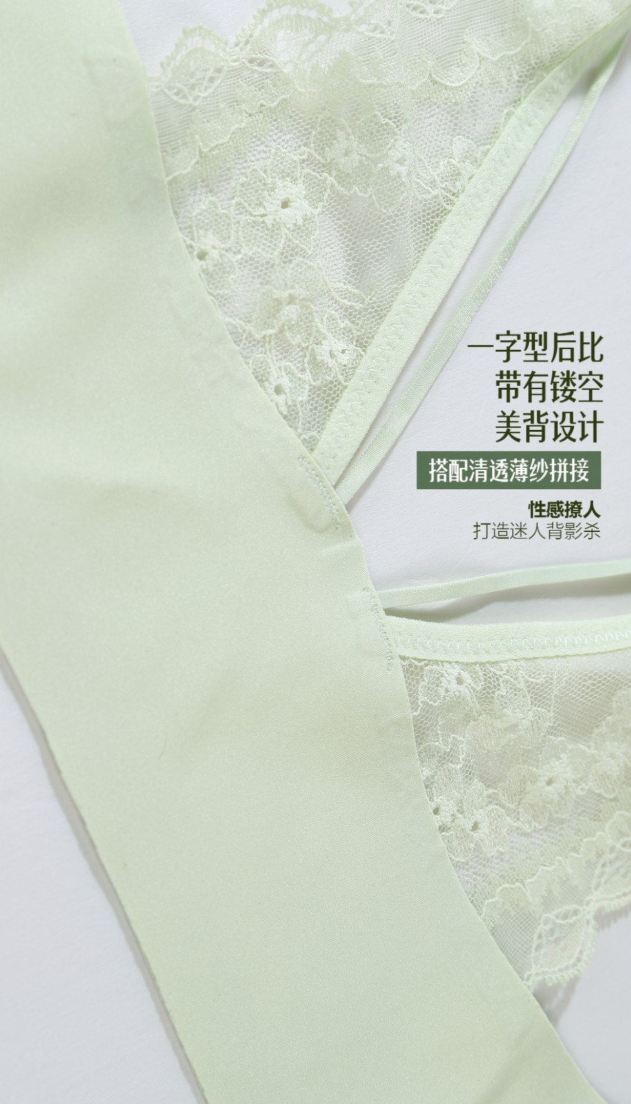 5.一字型后比带有镂空美背设计,搭配清透薄纱拼接,性感撩人,打造迷人背影杀;