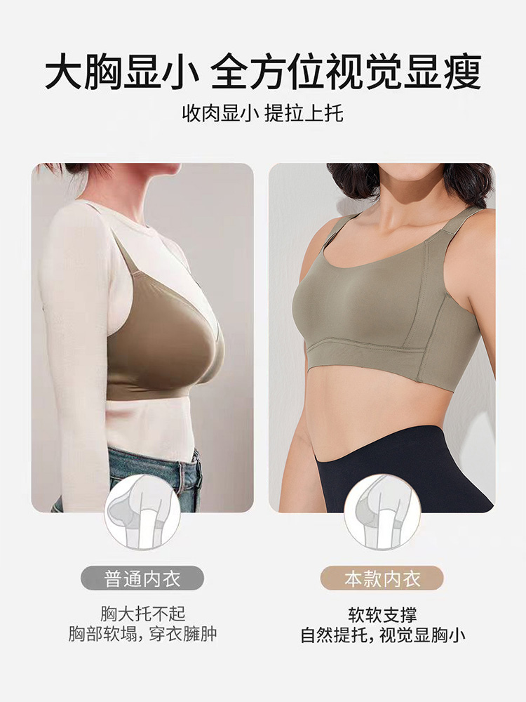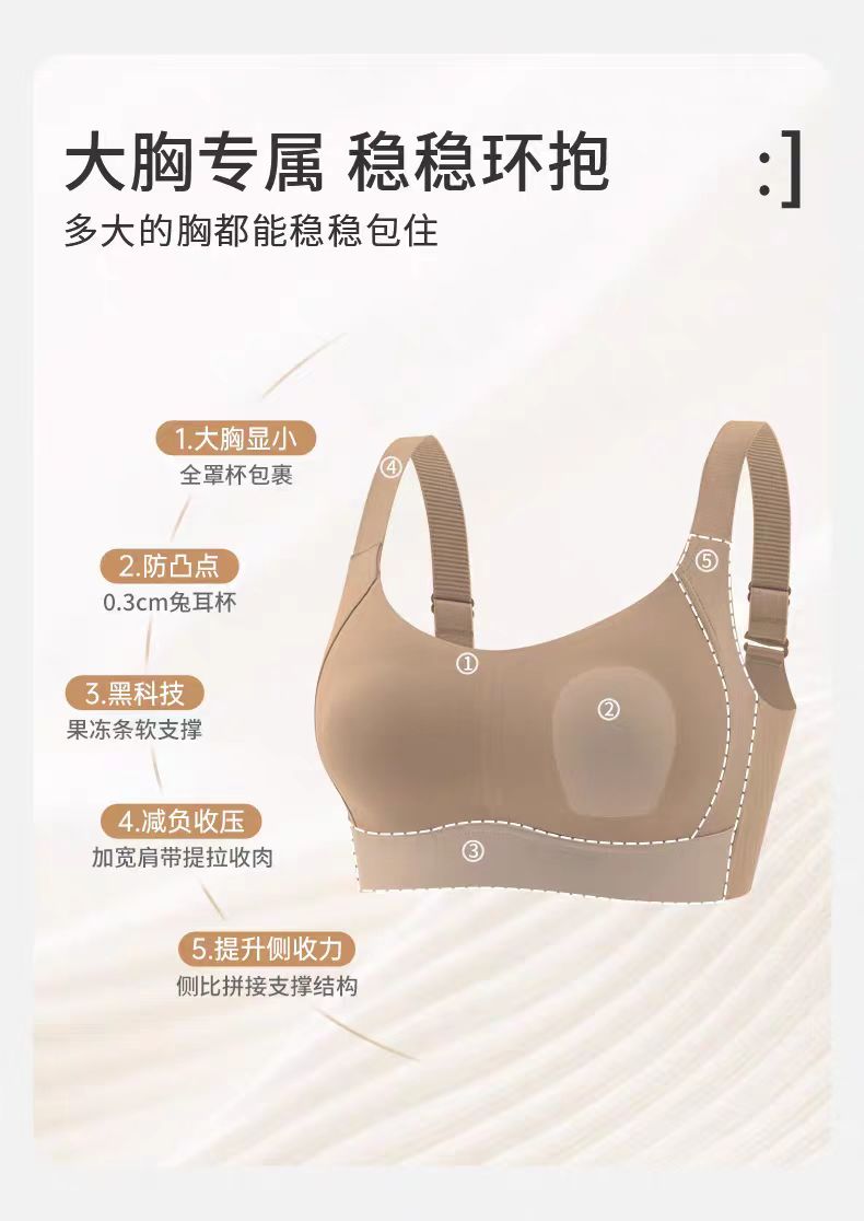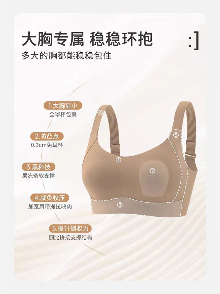 既有调整型文胸承托稳固的效果,又有睡眠文胸的裸感舒适,搭配3毫米兔耳朵内杯,极致透气不凸点。