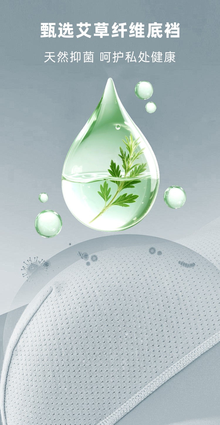 臻选60支高端长绒棉,天然艾草纤维底浪,3D立体无痕裁剪,在舒适中享受健康呵护。