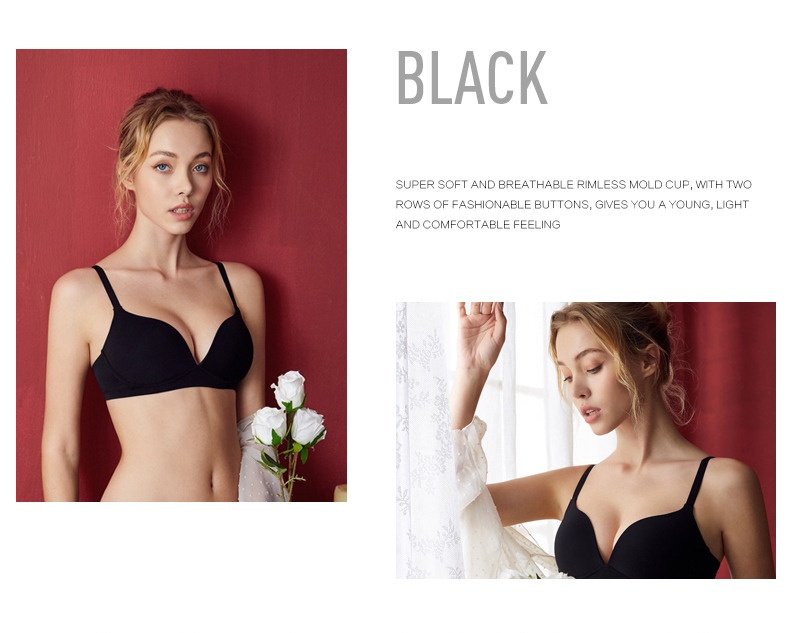 经典光面无痕设计,超柔透气无钢圈模杯,搭配时尚两排扣,给您年轻,轻盈,舒适的感觉